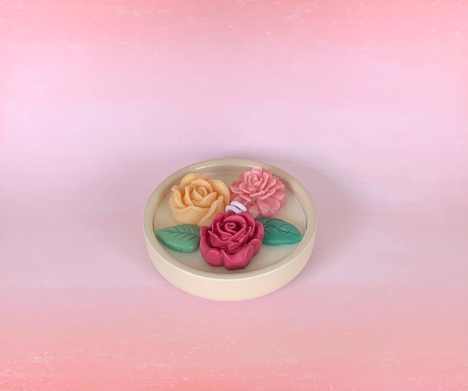 This elegant set of scented candles arranged on a ceramic plate makes a perfect gift for birthdays or party favors, suitable for occasions such as sweet sixteen celebrations, birthday gatherings, bridal showers, and more.