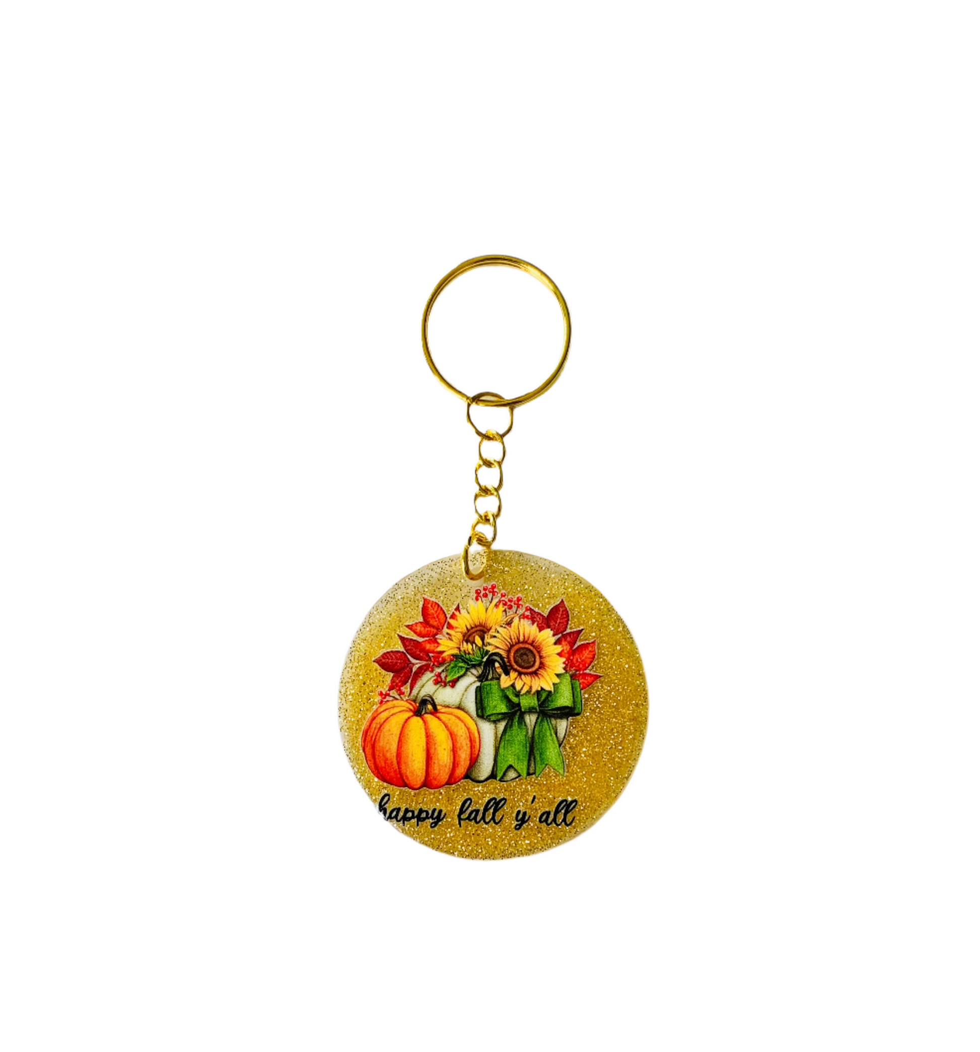 Gold glitter Acrylic Key Chain - Happy Fall Y'all