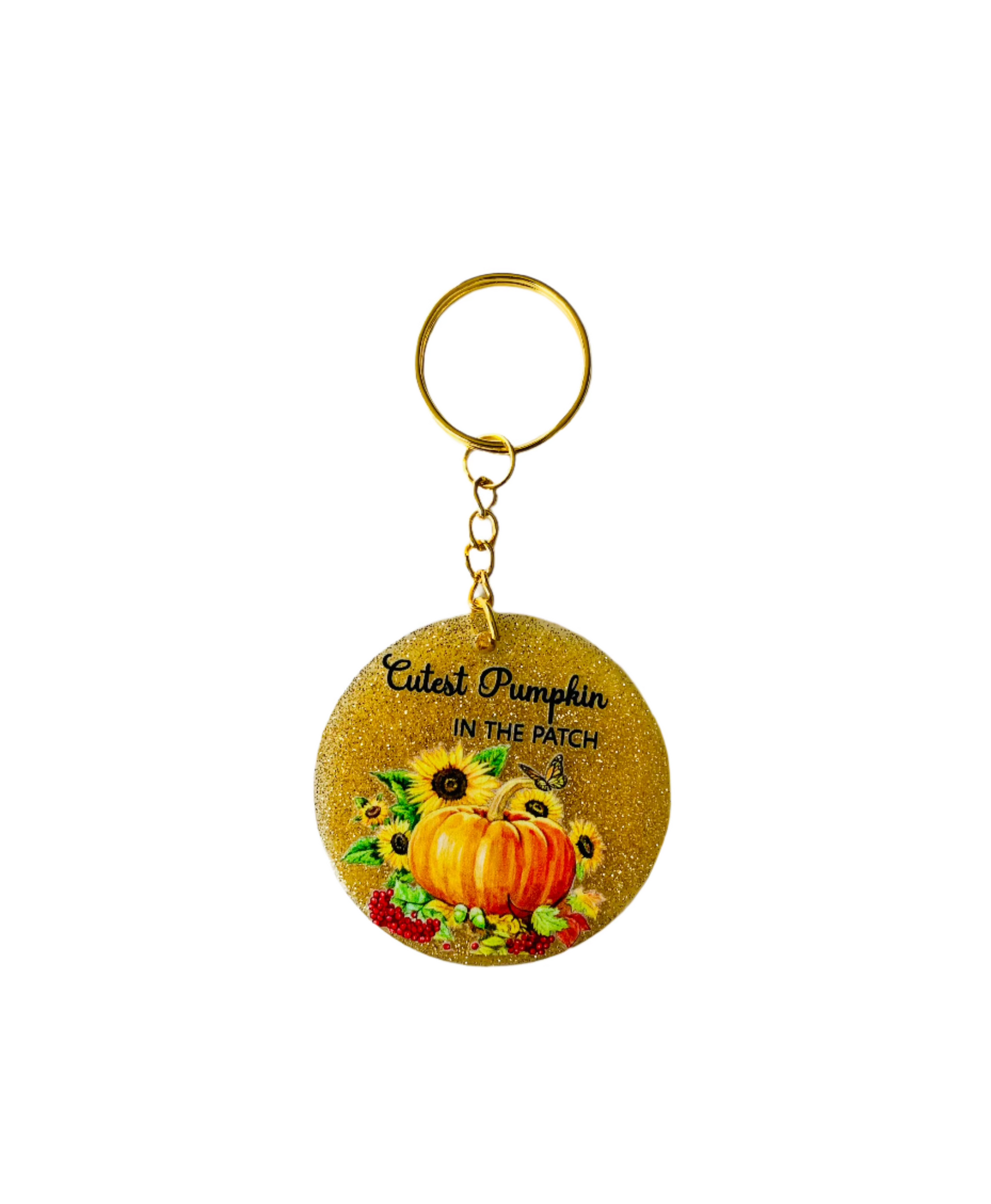 Gold glitter Acrylic Key Chain - Cute Pumpkin in the Patch