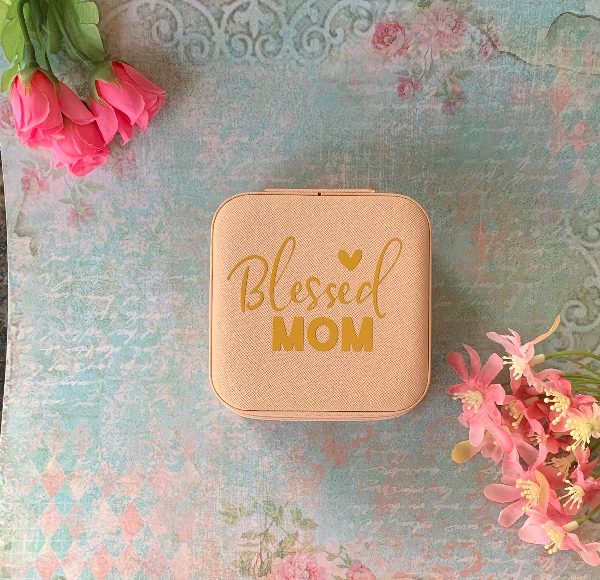 Expertly crafted with precise dimensions of 3.9 x 3.9", our Jewelry Box is the perfect travel companion. It has the lovely phrase: "Blessed Mom" making it the ideal gift for Mother's Day.
